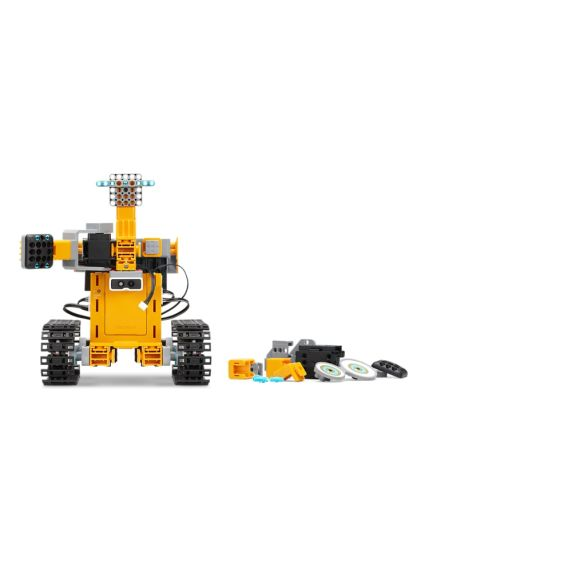 Poza faktem poruszania się na gąsienicach, jest on dużo sprytniejszy niż pozostałe zestawy. Dzięki czujnikowi podczerwieni jest w stanie nie tylko śledzić linię i poruszać się po niej, ale też wyczuwać przeszkody i omijać je. TankBot to pierwszy robot z serii, który jest w stanie podnosić i przenosić rzeczy w inne miejsce. Oczywiście wszystkie funkcje możesz zaprogramować w aplikacji na swój smartfon lub tablet z Androidem lub iOS. Dodatkowo daje możliwość dostępu do serwisu społecznościowego, gdzie znajdą Państwo setki projektów innych właścicieli JIMU.